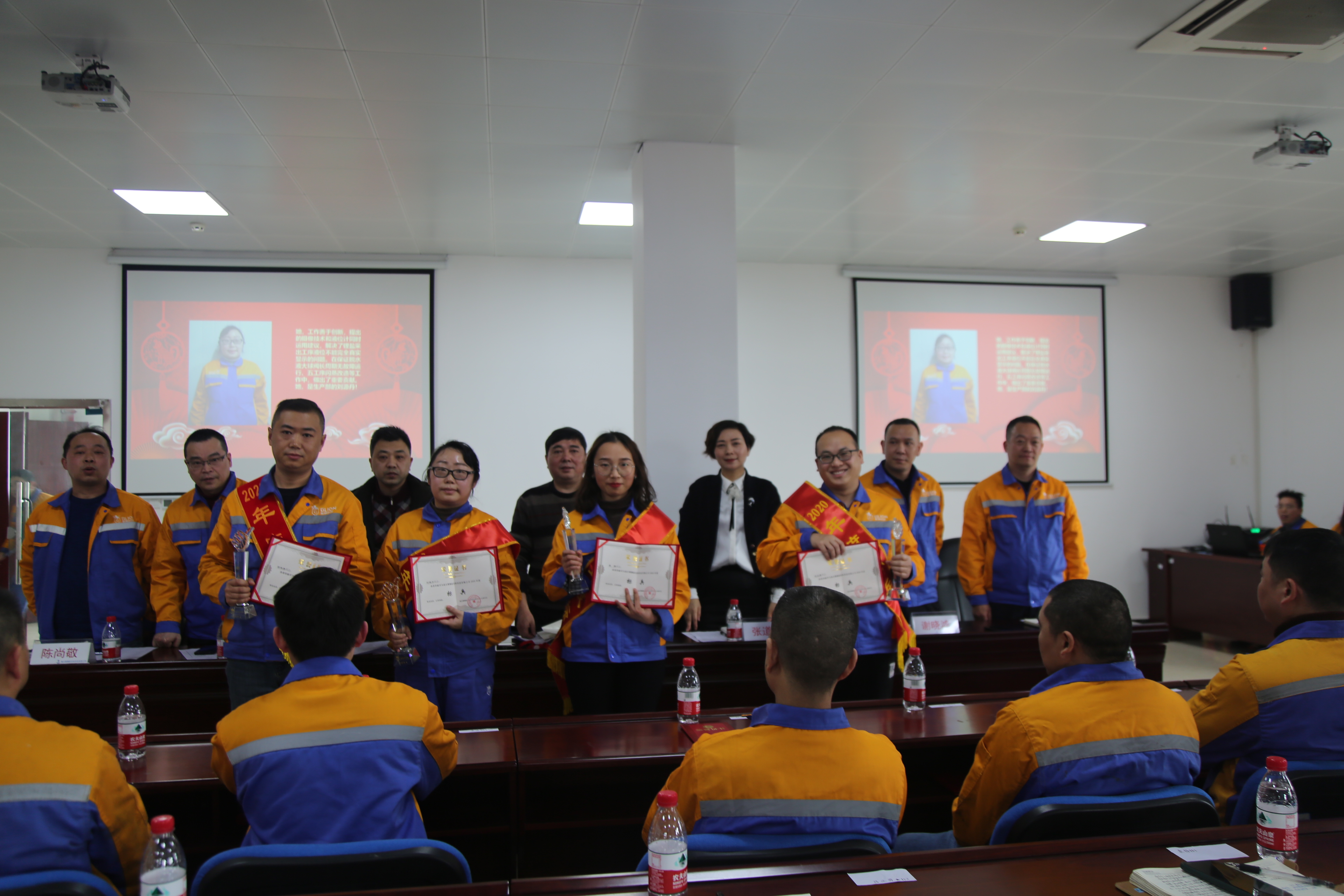 2021年2月7日,公司召開(kāi)2020年度工作總結暨表彰大會(huì ),公司領(lǐng)導、基層管理人員和生產(chǎn)系統主操以上人員參加會(huì )議,會(huì )議由副總經(jīng)理兼工會(huì )主席謝曉鴻主持。會(huì )上,總經(jīng)理助理劉思富帶大家回顧了公司去年的主要工作,并對2021年工作意見(jiàn)進(jìn)行了傳達。常務(wù)副總經(jīng)理呂天生宣讀表彰文件決定,對22名優(yōu)秀員工、4名標兵、2個(gè)先進(jìn)集體進(jìn)行表彰。標兵代表呂正勇、先進(jìn)集體代表王一明發(fā)表獲獎感言,在公司營(yíng)造了比學(xué)趕幫的濃厚氛圍。副總經(jīng)理陳尚敬、王政、張道菊、謝曉鴻分別就分管領(lǐng)域作了工作部署。